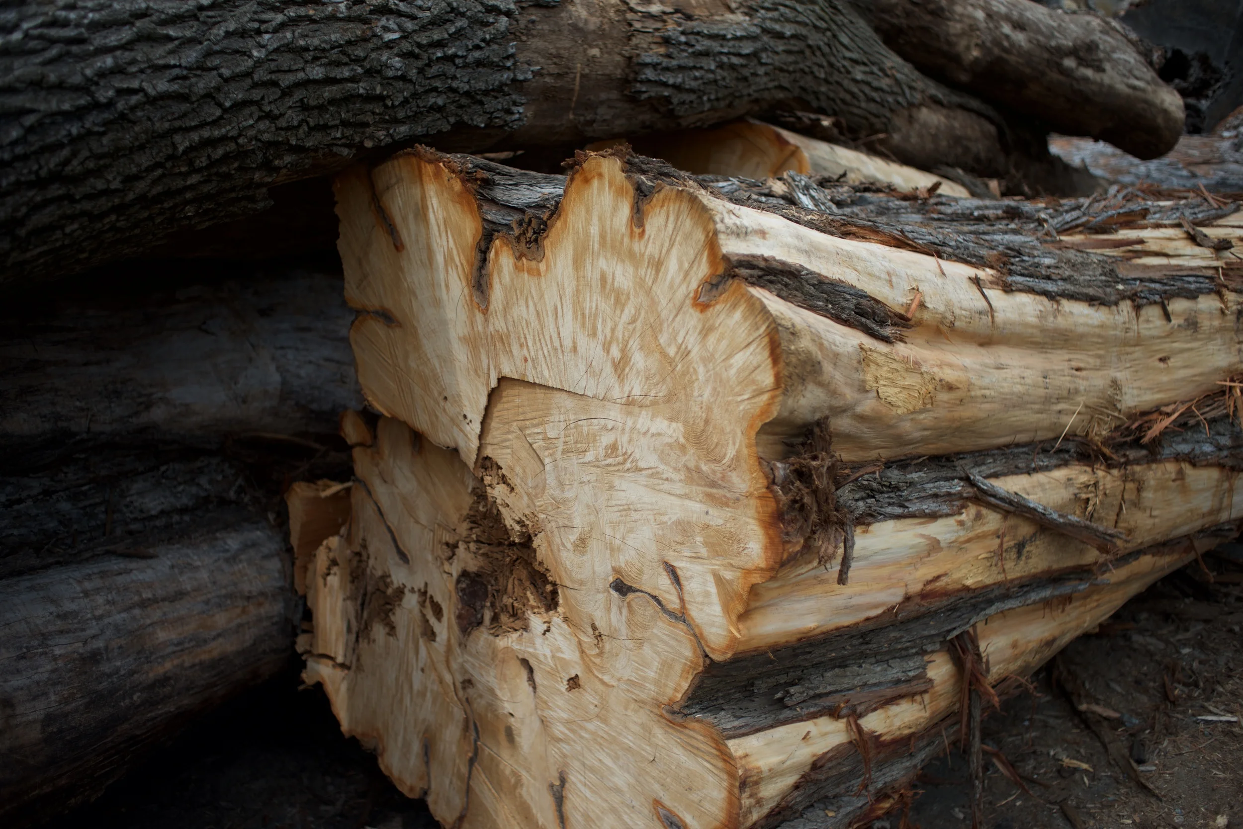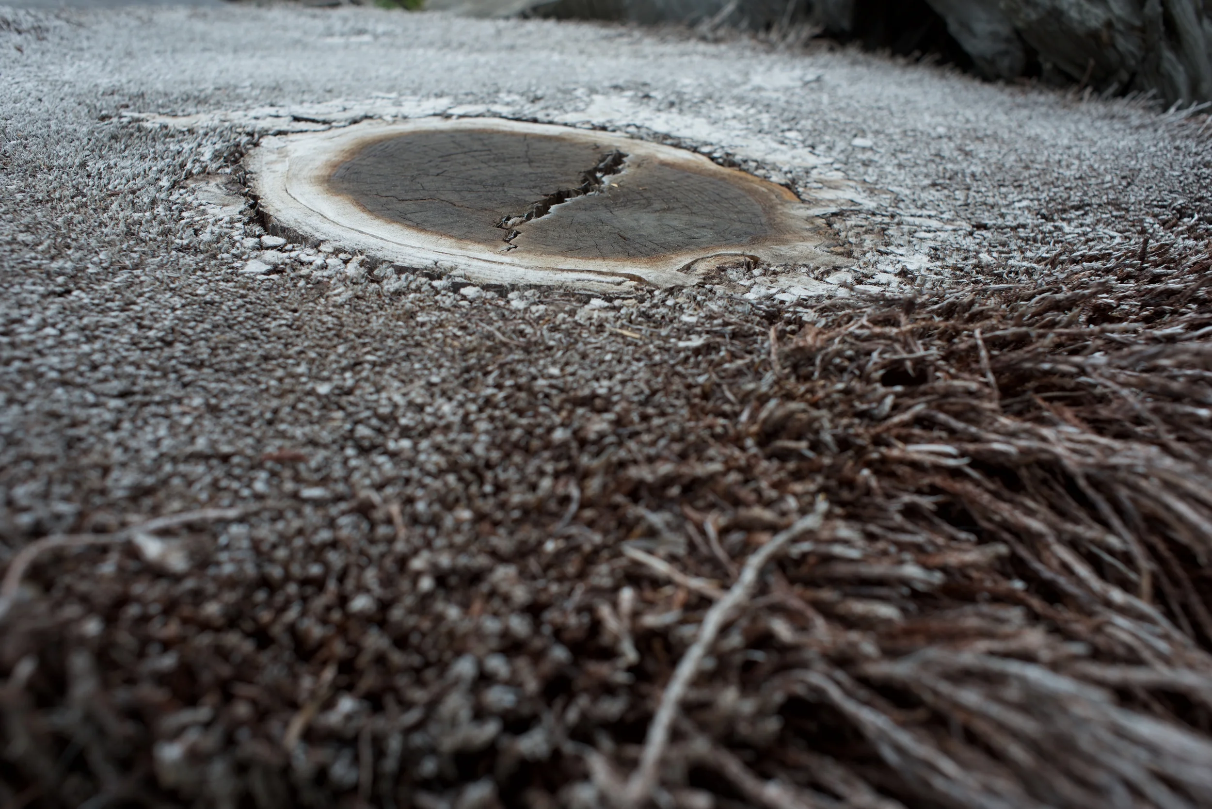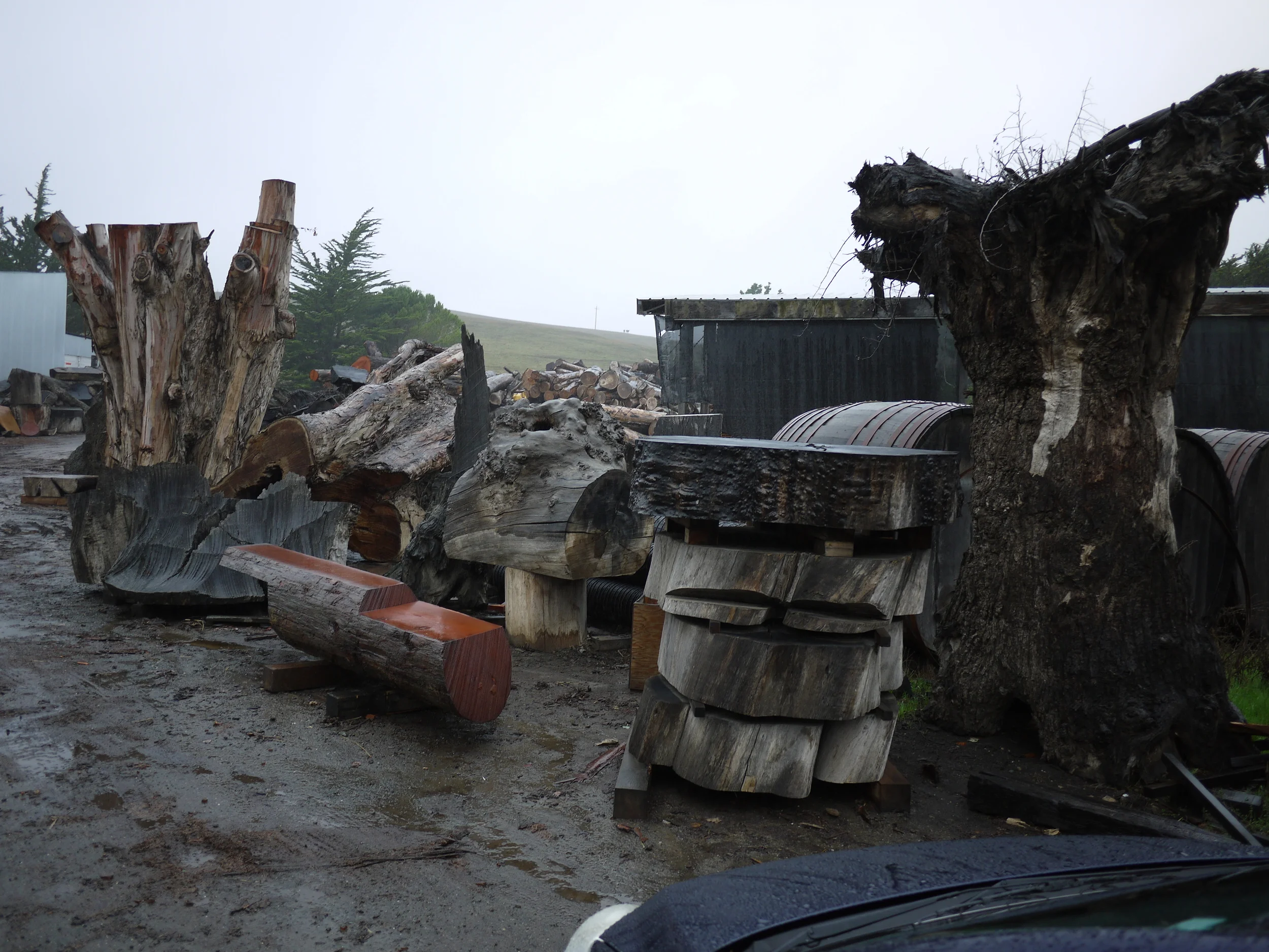 Along this canyon of grey arboreal leviathans Evan works his magic, slicing tree's the size of semis into beguiling nature-made works of art. Each slice of the tree reveals a cellulose masterpiece, painstakingly grown over several human life-times, falling open likes a wood sprite’s almanac.